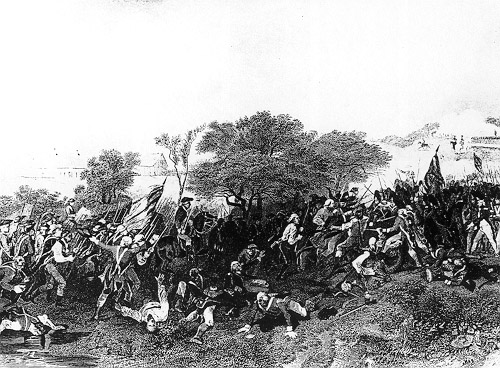 The artillery was too distant to be brought up readily, so that there was little opposition given here. A few shot though, and a little skirmishing in the wood checked the enemy’s career ... We were obliged to retire to a position, which, though hastily reconnoitred, proved an excellent one. Two regiments were formed behind a [hedge] fence in front of the position. The enemy’s horse advanced in full charge with admirable bravery to the distance of forty paces, when a general discharge from these regiments did great execution among them, and made them fly with the greatest precipitation. The grenadiers succeeded to the attack. At this time my horse was killed under me. In this spot the action was the hottest, and there was considerable slaughter of the British grenadiers. [Colonel Henry Monckton, commander 2nd Grenadier Battalion, was killed in this action.] The General ordered Woodford’s brigade [of Major-General Greene’s wing] with some artillery to take possession of an eminence [Comb’s Hill] on the enemy’s left and cannonade from thence. This produced an excellent effect. The enemy were prevented from advancing on us, and confined themselves to cannonade with a show of turning our left flank. Our artillery answered theirs with the greatest vigour. The General seeing that our left flank was secure, as the ground was open and commanded by it, so that the enemy could not attempt to turn it without exposing their own flank to a heavy fire from our artillery … In the meantime, Genl Lee continued retreating. Baron Steuben was order’d to form the broken troops in the rear.36